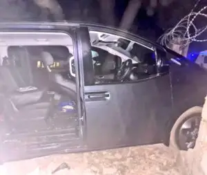 The vehicle that the tourists were travelling in drove in reverse for about 100 metres before crashing into the wall of Heroes Academy. The suspects reportedly sped off in their vehicle without taking anything from the tourists.
